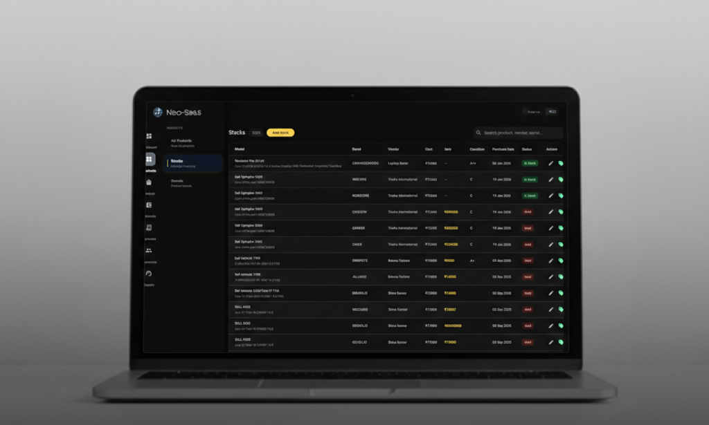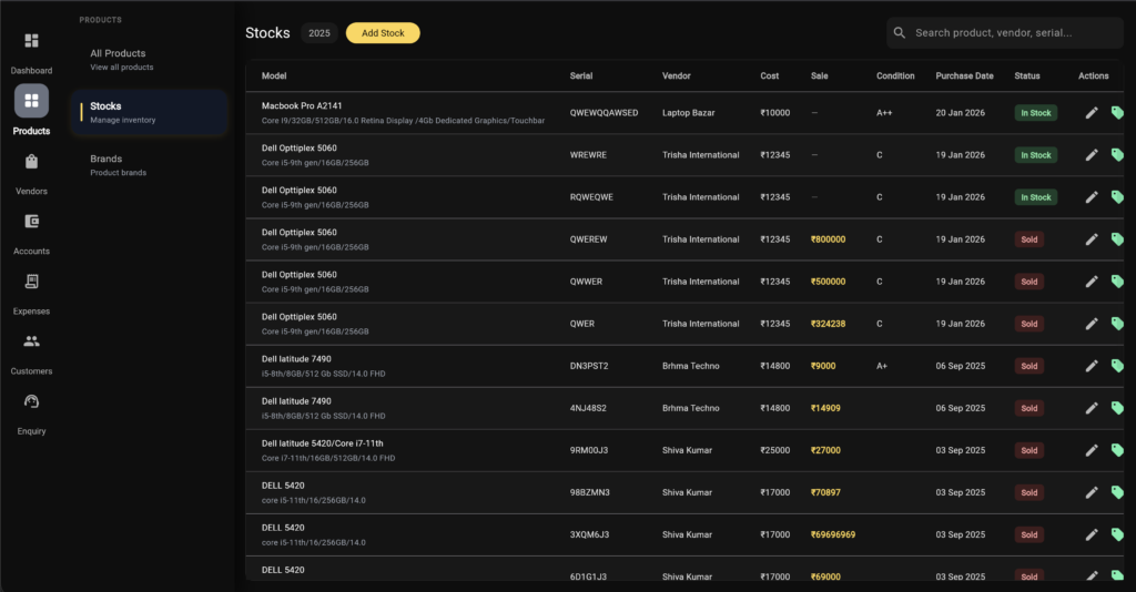 Easily manage RAM, SSD, processor variants, pricing tiers, and stock for each laptop model.